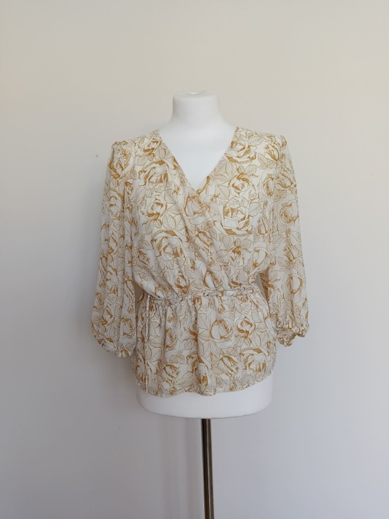 Bluzka damska NOTES DU NORD kremowa w złote róże elegancka kopertowa r.40