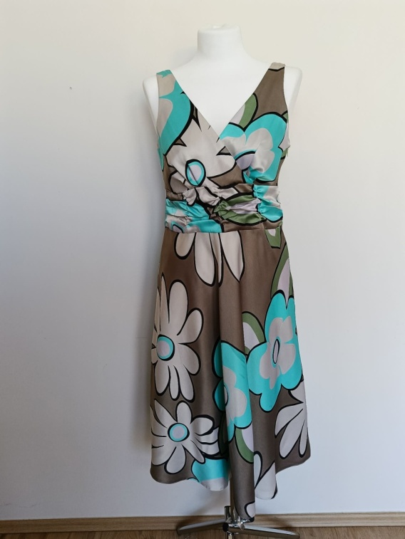 Sukienka Iwa Collection 42 kwiaty midi kopertowy dekolt elegancka