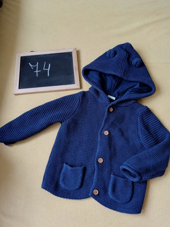 Sweterek niemowlęcy Next 6-9 m-cy granatowy kaptur uszy