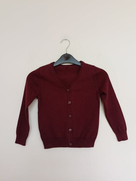 Klasyczny, miękki sweterek dziecięcy marki George w kolorze bordowym. Idealny na chłodniejsze dni, do szkoły, przedszkola lub na co dzień. Zapinany na guziki, wykonany z przyjemnej w dotyku, elastycznej dzianiny.
