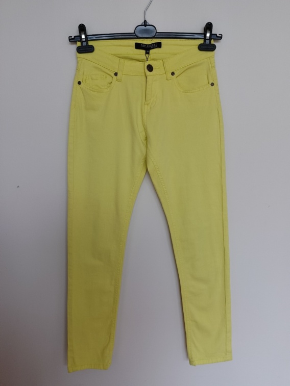 Żółte spodnie Top Secret r. 36 – bawełniane, elastyczne, wada (plamy)