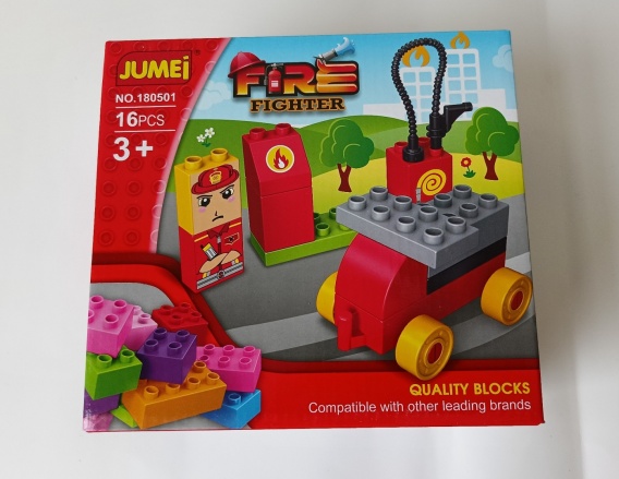 Dziecko może zbudować wóz strażacki, hydrant oraz bawić się dołączoną figurką strażaka, tworząc własne akcje ratunkowe.