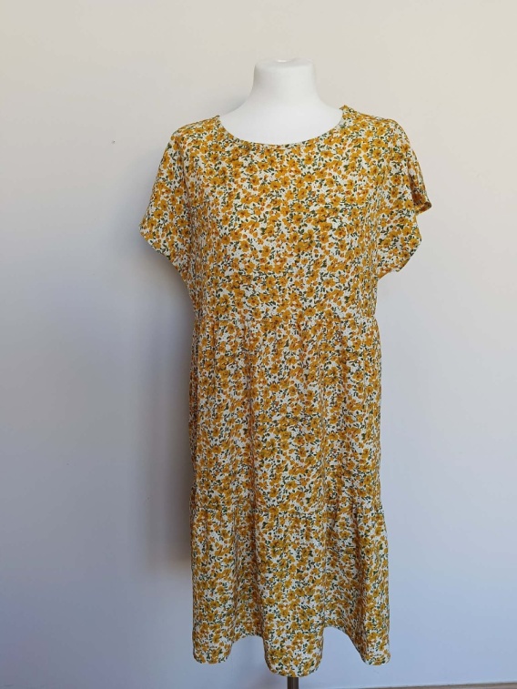 Lekka i wygodna sukienka damska marki Shein w piękny kwiatowy wzór w odcieniach żółci i zieleni. Model o luźnym kroju, który zapewnia komfort noszenia i świetnie układa się na sylwetce.